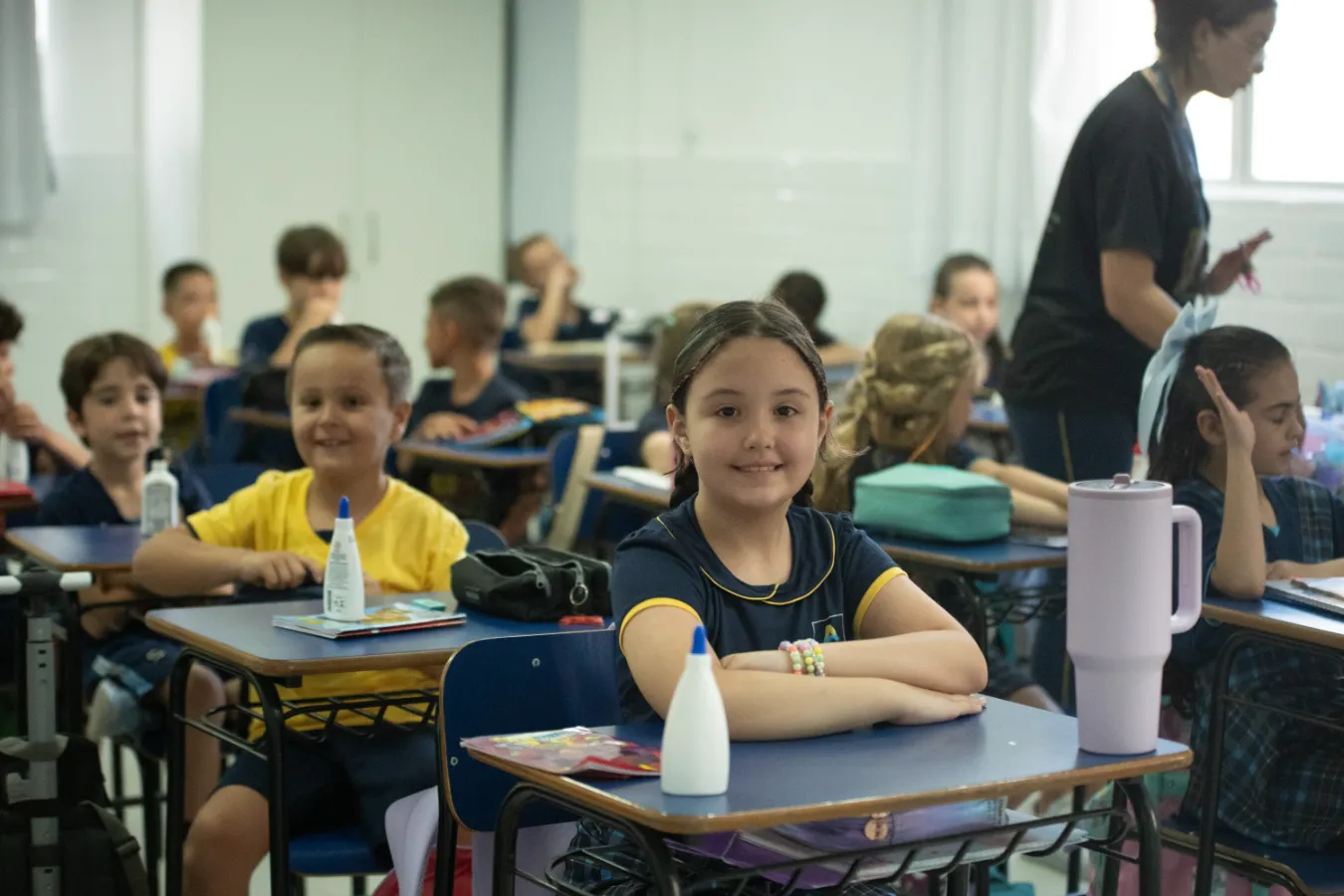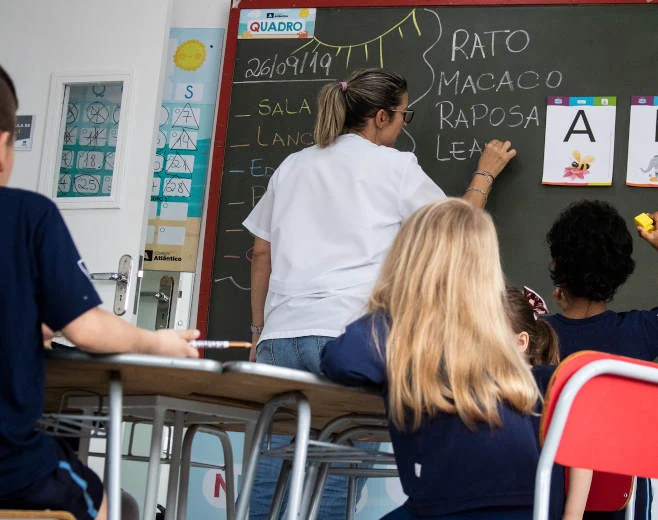 O foco dos primeiros anos é a alfabetização, desenvolvida por meio de situações lúdicas e intencionais em sala de aula, que estimulam o prazer em aprender e a construção significativa do conhecimento.